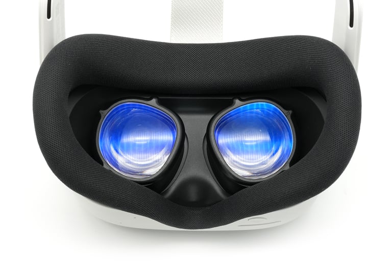Lentes Fresnel: Enquanto o Quest 3 (e prováveis futuros lançamentos) usa lentes Pancake, que são mais nítidas e finas, o 3S usa as antigas lentes Fresnel. Isso significa um "sweet spot" menor (você precisa ajustar o headset perfeitamente para não ver borrões).